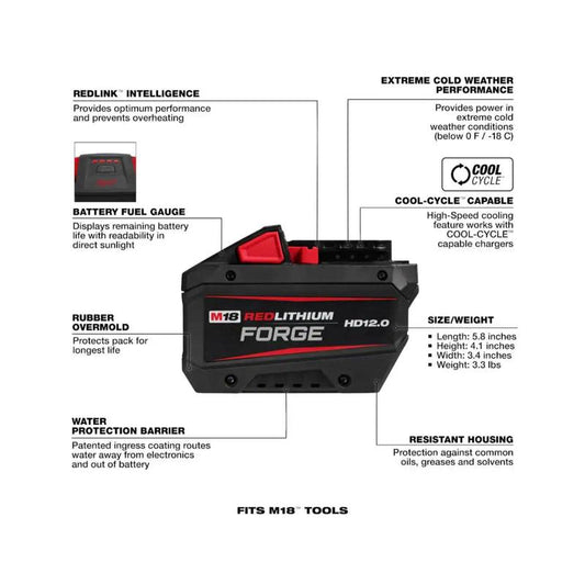 Milwaukee M18 FORGE HD 12.0 Ah Lithium-Ion Battery Pack - Unmatched Power and Performance Model # 48-11-1813